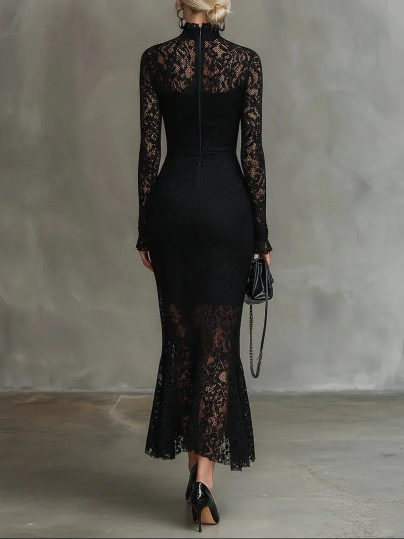 Elisabetta – Vestido largo negro de encaje